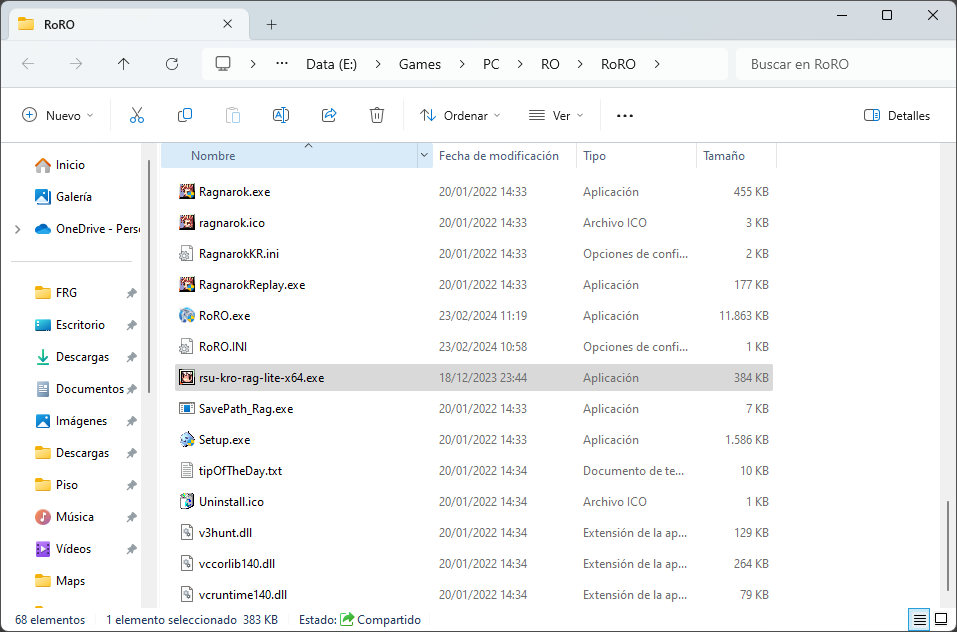 Para evitar errores es muy importante actualizar el cliente. El parche viene con un ejecutable para actualizar el cliente: rsu-kro-rag-lite-x64.exe. Ejecutar el fichero y esperar a que acabe la actualización: